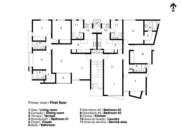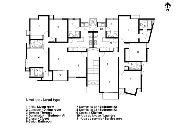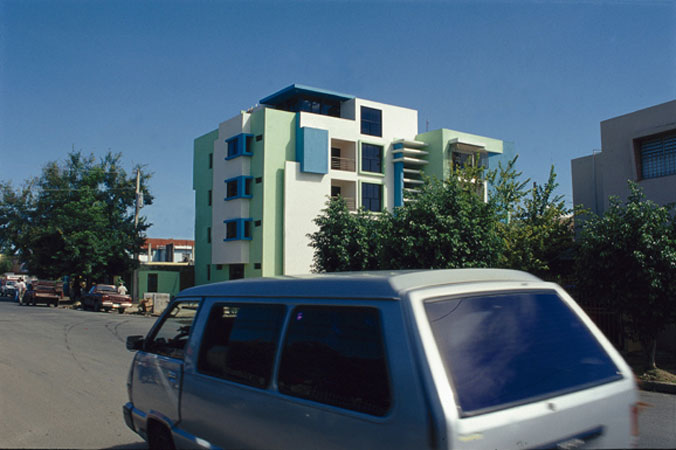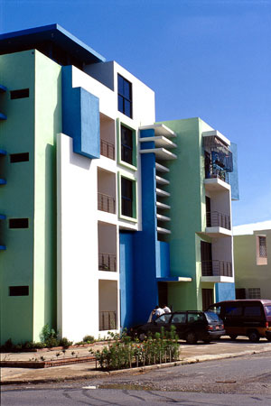 El ensanche Alma Rosa esta localizado en la parte oriental de la ciudad, zona que se ha caracterizado en los ultimos años por un desarrollo economico y poblacional desbordante... El lote esta ubicado sobre el trazado ortogonal del ensanche ozama, cuyas caracteristicas generales de lotificacion vienen dadas por el desarrollo de unidades individuales, de viviendas con lotes mayores de 500 mts2, espaciosas calles, e infraestructura adecuada al desarrollo suburbano. Es un lote de esquina de aproximadamente 600 mts2 que trata nuestra intervencion. a) Dos opciones de unidades de viviendas. b) Evitar la lectura del bloque rigido de apartamento tipificado de las intervenciones de la zona. produciendo la idea de edificaciones vecinas que se respetan y conviven mutuamente. El edificio es proyectado adaptandose a las lineas delimitantes de la propiedad, que definen la geometria general, destacandose en la planimetria. Dos bloques (unidades de vivienda) de diferentes proporciones, y a la vez diferenciadas en las soluciones de los espacios interiores, separadas entre si por el area de acceso vertical (definido por planos horizontales de hormigon, a semejanza de un gran ventanal de celosias, que permite controlar la entrada de luz.) con este esquema basicamente se buscan: c) Reforzar, con la idea anterior, el hecho de "construir el caracter urbano" en un lugar planificado previamente como suburbano, de baja densidad, pero que en los ultimos años, al modificarse los reglamentos de uso de suelo y densidades, ha desarrollado una febril actividad constructiva . (Arq. Roberto Rijo)