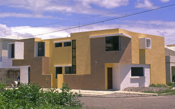 Marparaiso es un emprendimiento localizado en la provincia de Santo Domingo Este situado proximo al parque de este y el borde costero , el rango de lotificacion esta entre 200 y 500 mts2 , de uso residencial. Nuestra intervencion se produce en un lote de esquina de 275 mts2 orientado norte sur y en el cual proyectamos dos unidades de viviendas basadas en el mismo programa pero diferenciadas por el area, 120 y 140 mts2 respectivamente.El primer nivel consta de las areas sociales , servicios un pequeño patio trasero y estacionamiento frontal en el Segundo nivel las areas dormitorio. Su estructura de imagen esta definida por dos volumenes diferenciados por la composicion geometrica de los llenos y vacios, un plano proyectado solo como una lamina de ladrillos superpuesta que interrelaciona la imagen de las dos unidades como un todo.