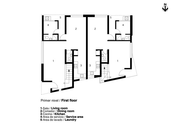 Marparaiso es un emprendimiento localizado en la provincia de Santo Domingo Este situado proximo al parque de este y el borde costero , el rango de lotificacion esta entre 200 y 500 mts2 , de uso residencial. Nuestra intervencion se produce en un lote de esquina de 275 mts2 orientado norte sur y en el cual proyectamos dos unidades de viviendas basadas en el mismo programa pero diferenciadas por el area, 120 y 140 mts2 respectivamente.El primer nivel consta de las areas sociales , servicios un pequeño patio trasero y estacionamiento frontal en el Segundo nivel las areas dormitorio. Su estructura de imagen esta definida por dos volumenes diferenciados por la composicion geometrica de los llenos y vacios, un plano proyectado solo como una lamina de ladrillos superpuesta que interrelaciona la imagen de las dos unidades como un todo.
